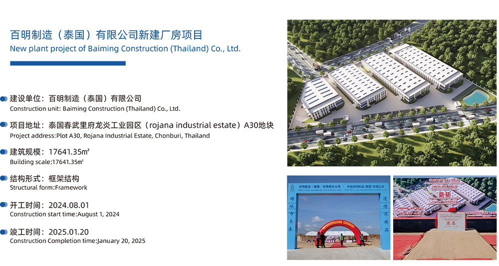 百明建設(泰國)有限公司成立于2023年12月,注冊資本金1000萬泰銖,是蘇州百明建設有限公司在泰國的全資子公司,公司位于泰國春武里府的芭提雅。